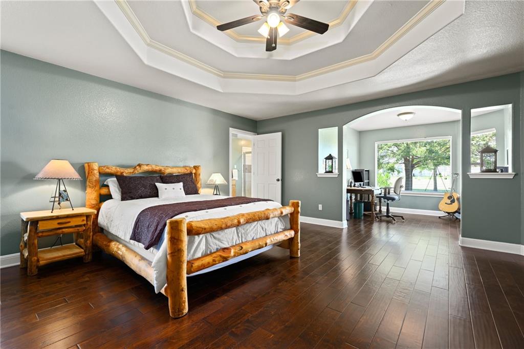 Charmingly elegant single-level, move-in ready home, nestled on a 1-acre lot in the desirable Woods of Fountainwood subdivision! This 4 bedroom, 2 1/2 bath home exudes charm, sophistication and the warmth of home. From the front entry you are greeted by an inviting family room, highlighted by high ceilings, gorgeous wood floors and a cozy fireplace. Large windows provide plenty of natural light and afford a view of the spacious back yard. The eat-in kitchen features include granite counters, stainless appliances, breakfast bar and breakfast area as well as a dining room just off of the kitchen. The primary suite is MASSIVE and features tray ceilings, crown molding and an en-suite office/sitting area that is perfect for anyone who works from home! The primary bathroom features double vanities, a separate shower, soaking tub and walk-in closet. The rest of the layout of the home is completed by three, large secondary bedrooms as well as a laundry room, full bath and a half bath. Step outside and enjoy a cup of coffee on the covered back patio or gather around the stone fire pit with friends. The 1 acre yard has many mature trees and affords a quiet buffer from neighboring homes. There is a play shed out back that has a window A/C unit as well. Updates include: Replaced HVAC in 2019, New Roof in 2021, Replaced Water Heater in 2017 and a new oven in 2020. All of these great features along with easy access to Lake Georgetown and hiking trails via Jim Hogg Park (less than 2-miles away) as well as quick access to shopping, Fort Hood, Austin and the Airport via I35, HWY 195 & 130 toll make this location the perfect mix of serenity and convenience. This is one home you will not want to miss!! FEMA Unknown.
