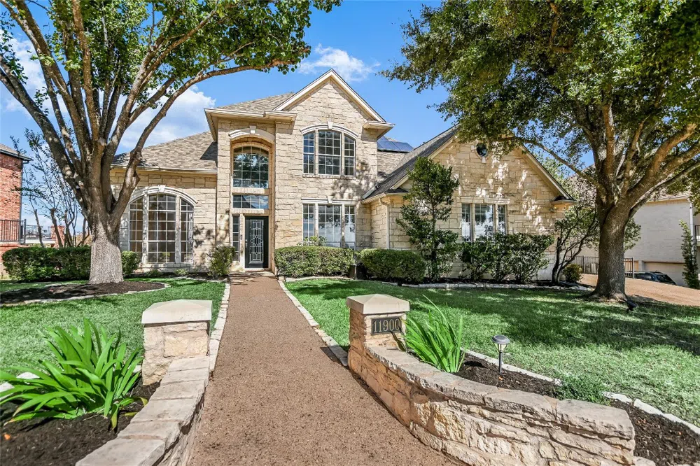 Just Listed on the iconic Mira Mesa Drive in Steiner Ranch! This exceptional home offers breathtaking hill country views from every angle, with glimpses of downtown Austin from the front. The white limestone exterior, inviting walkway, and side-entry garage enhance the curb appeal. Step into a bright, spacious interior with soaring ceilings, and a dramatic staircase. Recent interior paint throughout and walls of windows flood the home with natural light, making every room feel open and airy. The updated kitchen features quartz countertops, white cabinetry, a modern backsplash, and stainless-steel appliances. The cozy living room with a fireplace, adjacent breakfast area, and cheerful sunroom are perfect for relaxing while soaking in the stunning views. The desirable mother-in-law floor plan places the primary bedroom and a guest room on the main level, providing convenience and privacy. The primary suite offers serene views and a spa-like bathroom. This floorplan will nicely accommodate multi-generational living with multiple living and flex spaces that include an upstairs game room and three additional bedrooms. Two of the bedrooms include access to a "hidden” play or hobby room, complete with a storage bench and a charming round window. Outdoor living is equally impressive with an oversized, multi-level deck overlooking nearly 1/3 acre—a perfect setting for gatherings or future pool installation. Steiner Ranch amenities include pools, playgrounds, a lake club, and clubhouses. Homes on this quiet, sought-after street with cul-de-sacs at both ends and unparalleled views are rarely available. Highly Rated Leander ISD Schools! Don’t miss the chance to experience hill country living at its finest. Schedule a showing today!