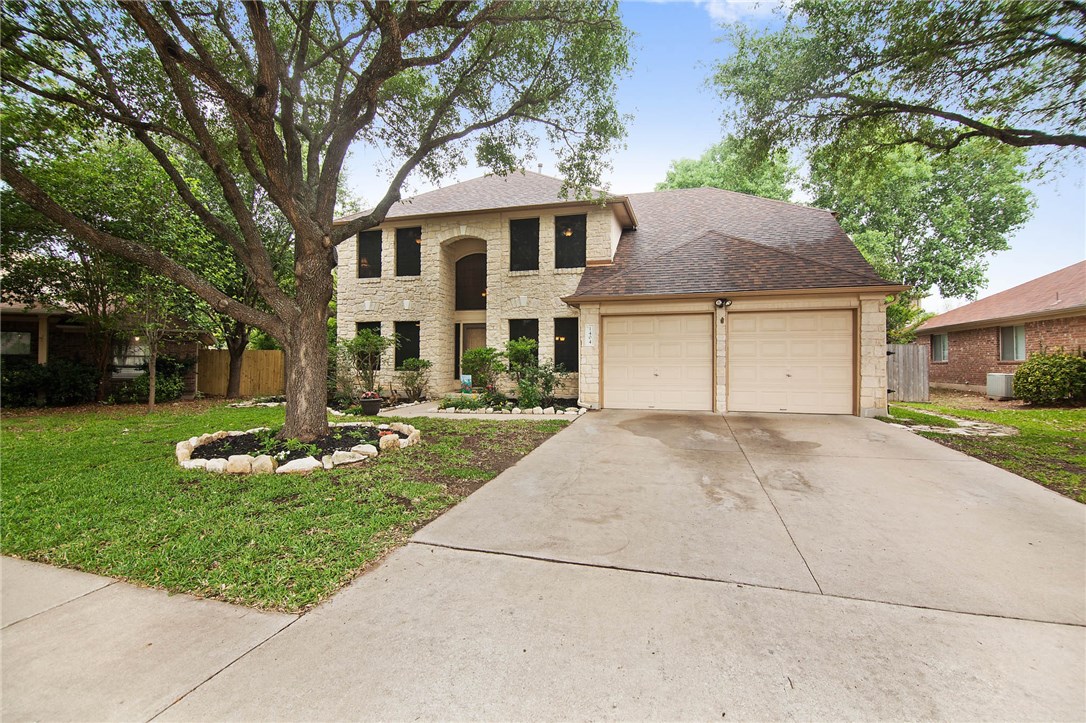 Your beautiful, pristine home w/natural light rests on a quiet cul-de-sac lot w/mature shade trees that add energy-efficiency. A gracious foyer, home office/flex space & dining welcomes, while a chef's style kitchen w/center isl., breakfast area & granite opens to a spacious family room. An ext. gar. & storage give space you need. The huge covered patio w/fan is perfect for Texas style entertaining! Then steal away to a private master suite--dbl vanity, His & hers walk-ins, garden tub & separate shower!Restrictions: Yes