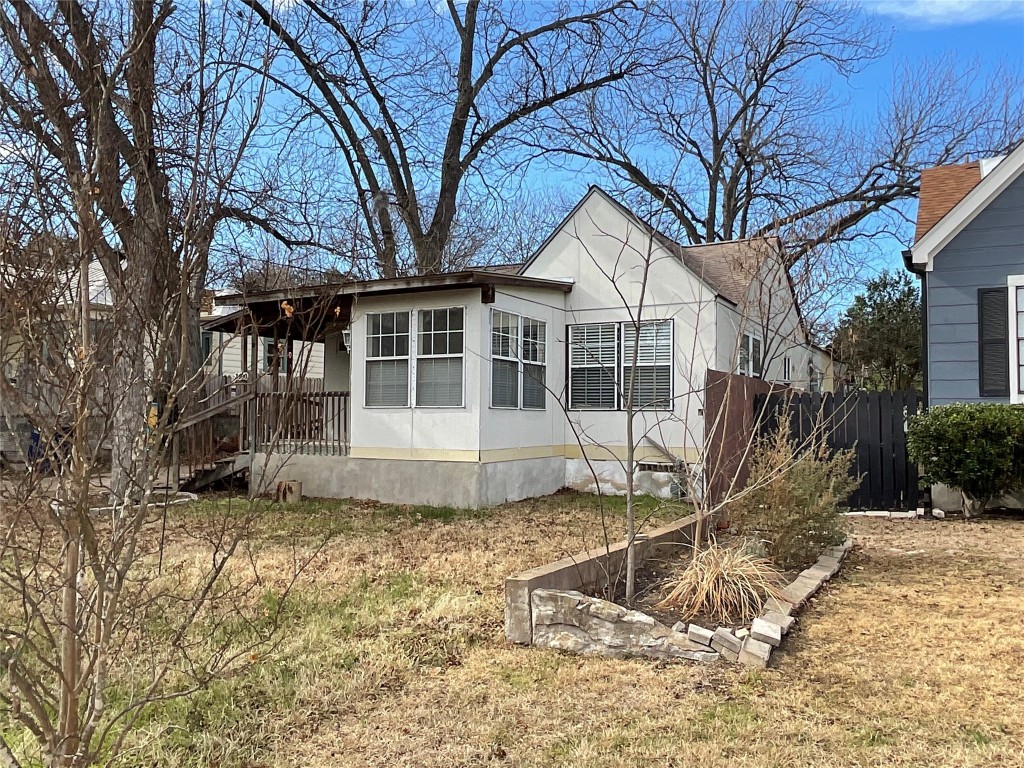 Great opportunity to continue and complete the renovation of this Cherrywood neighborhood home. Close to UT, downtown, Mueller, etc. The 2nd bedroom of this property was converted into a 2nd living area. The property features original hardwood floors and a kitchen skylight. If still available, the small workshop on wheels will convey with the property.