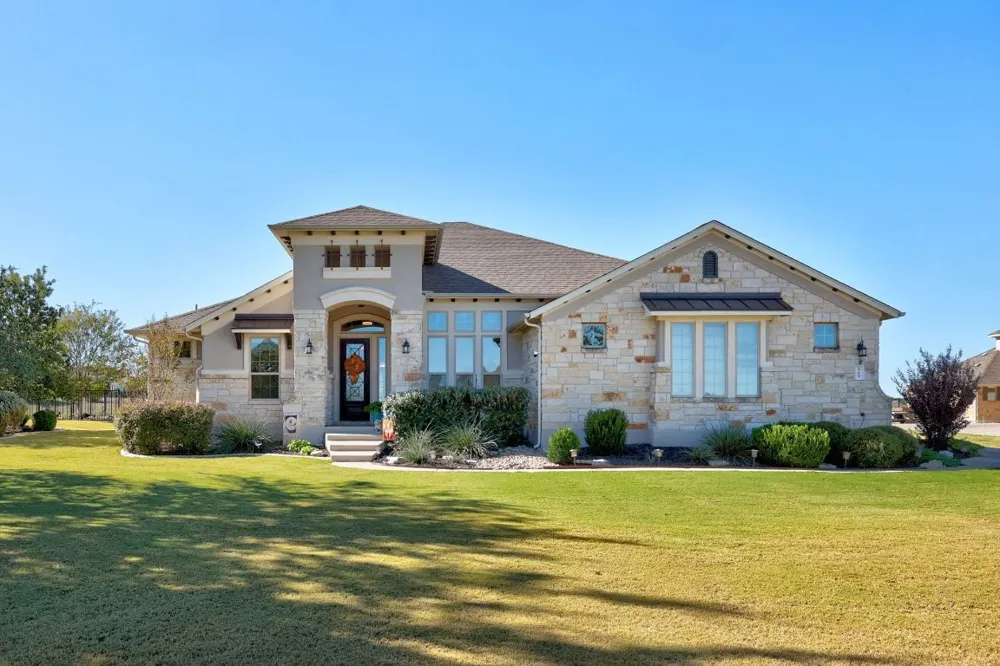 WOW! This is better than new! Beautiful one story home with 4 bedroom, 3 full bath home in the Clearwater Ranch subdivision in Liberty Hill, on over an acre lot! The oversized Primary Suite boasts a huge walk-in closet and a spa like "en suite". The chef's kitchen with a 12' island is a dream for entertaining, opening to the main living area with a wood burning fireplace, Whirlpool Appliances and Sharp built-in microwave. Massive back patio allows you to enjoy your backyard view even in inclement weather. There is even a hot tub! For those perfect days, there is lanai with a TV and lighting. This is also where you'll find the gas grill perfect for BBQing while watching the game. A separate, detached garage has space for 5 cars (the lift is negotiable) and is fully air-conditioned & heated for those wanting a hobby room or even convert to a full living space for guests.