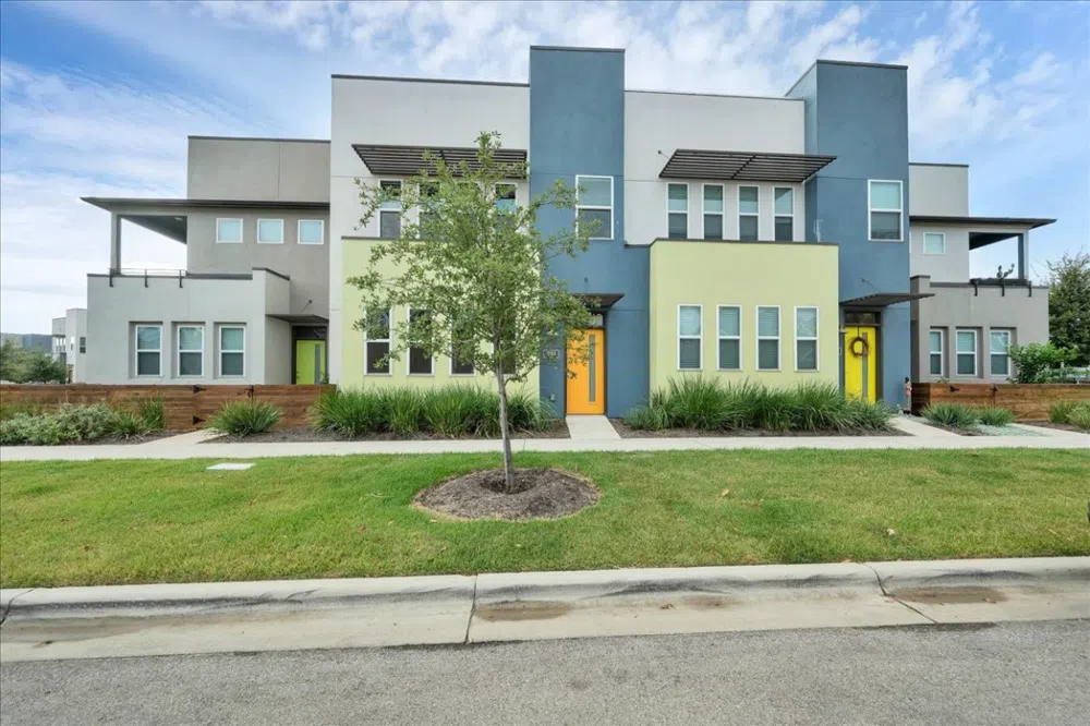 Discover modern living at its finest in this stunning, efficient, affordable townhome in South Austin’s vibrant Goodnight Ranch community! Upon entry, you're welcomed by a bright, open-concept layout with a spacious living area and a contemporary kitchen featuring stainless steel appliances. The open concept and connected main level is ideal for cozy mornings and effortless entertaining. Custom window coverings, durable wood tile floors, and a fenced-in yard with newly installed turf; create a stylish, low-maintenance functional space. Upstairs, enjoy dual primary suites, each equipped with ensuite bathrooms, generous walk-in closets, and additional storage spaces. The main primary bathroom boasts a walk-in glass shower, dual vanities, and and the larger of the two walk-in closet. Adding to the turn-key appeal of this property, all appliances—including refrigerator & washer/dryer—are included in the sale. This home offers a complete lifestyle upgrade and is situated within walking distance of a community park, playground, and pool, plus new retail options available or coming soon. Fitness and hiking enthusiasts will enjoy the network of paved walking trails within the community or the adjacent and more secluded Onion Creek Greenbelt system of nature trails. The neighborhood is zoned to highly-rated Blazier Elementary, with nearby medical facilities and easy access to the growing amenities of Goodnight Ranch-this townhome is the sensible selection for comfortable, economical and peaceful living while within reasonable distance of iconic Austin landmarks, dining & entertainment offerings. The property possesses a below-average 1.714% tax rate and an Assumable 3.75% conventional loan. Concessions and closing cost incentives will be considered within the terms of written offers. Buyers should verify all information.